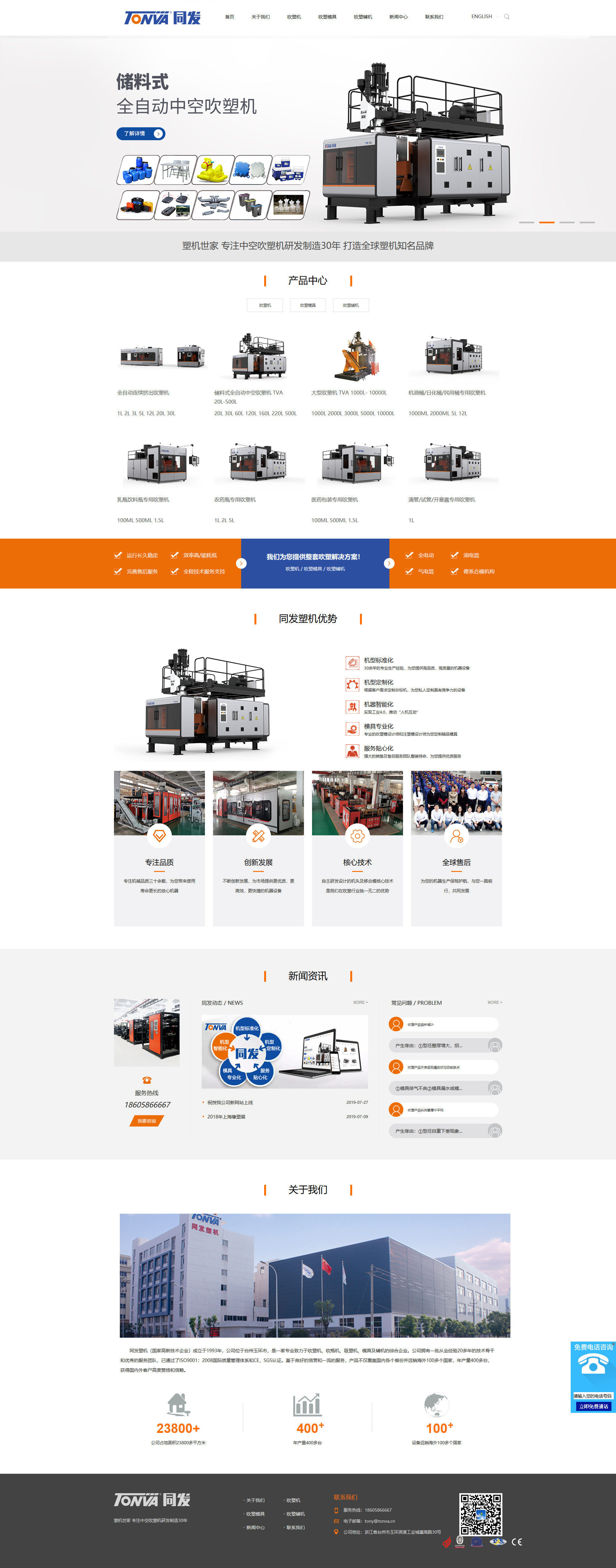 ? ? ?浙江同發(fā)塑機(jī)有限公司(國(guó)家高新技術(shù)企業(yè))成立于1993年,公司位于臺(tái)州玉環(huán)市,是一家專業(yè)致力于吹塑機(jī)、吹瓶機(jī)、吸塑機(jī)、模具及輔機(jī)的綜合企業(yè)。公司擁有一批從業(yè)經(jīng)驗(yàn)20多年的技術(shù)骨干和優(yōu)秀的服務(wù)團(tuán)隊(duì),已通過(guò)了ISO9001:2008國(guó)際質(zhì)量管理體系和CE、SGS認(rèn)證?;诹己玫男抛u(yù)和一流的服務(wù),產(chǎn)品不僅覆蓋國(guó)內(nèi)各個(gè)省份并遠(yuǎn)銷海外80多個(gè)國(guó)家,年產(chǎn)量400多臺(tái),獲得國(guó)內(nèi)外客戶高度贊揚(yáng)和信賴。