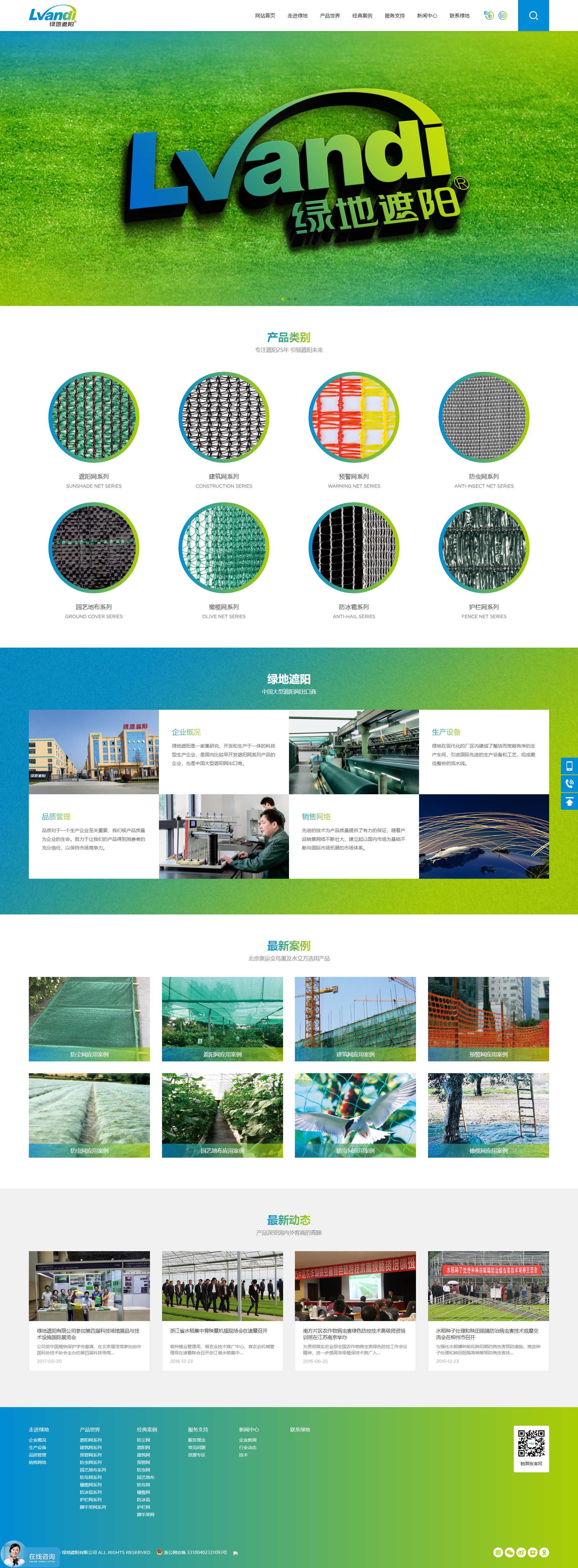 綠地遮陽有限公司創(chuàng)建于1992年,目前已發(fā)展成為一家集研究、開發(fā)和生產(chǎn)于一體的科技型生產(chǎn)企業(yè),公司擁有當(dāng)今國際先進(jìn)生產(chǎn)設(shè)100多臺套。是國內(nèi)較早開發(fā)遮陽網(wǎng)系列產(chǎn)品的廠家,也是全國最大的遮陽網(wǎng)出口企業(yè)之一。企業(yè)通過IS09001:2008國際質(zhì)量體系認(rèn)證,主要生產(chǎn):遮陽網(wǎng)、籬笆網(wǎng)、休閑用品網(wǎng)、沙灘網(wǎng)、防蟲網(wǎng)、防鳥網(wǎng)、擋風(fēng)網(wǎng)、跳床網(wǎng)、橄欖網(wǎng)等編織網(wǎng)系列。