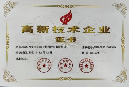 1月26日,公司再次收到 “高新技術(shù)企業(yè)”證書,證書編號:GR202361007319, 該證書由陜西省科學(xué)技術(shù)廳、陜西省財政廳、國家稅務(wù)總局陜西省稅務(wù)局聯(lián)合頒發(fā),證書有效期三年。國家高新技術(shù)企業(yè)門檻較高,認定須經(jīng)過嚴格的測評和審批程序,公司憑借專業(yè)的研發(fā)團隊,雄厚的技術(shù)實力,持續(xù)的創(chuàng)新能力,科學(xué)的企業(yè)管理,順利通過了國家高新技術(shù)企業(yè)復(fù)審,再次被認定為國家級“高新技術(shù)企業(yè)”,這標志著公司在研發(fā)和創(chuàng)新方面得到國家相關(guān)部門的肯定與認可。